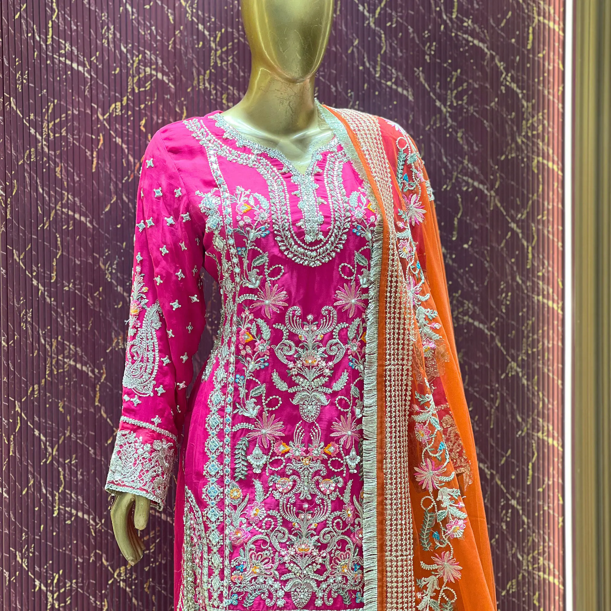 The top, bottom, and dupatta are all made from Georgette fabric, which is soft, lightweight, and beautifully flowy. The fabric gives a graceful fall to the outfit and feels easy and comfortable to wear throughout the day.