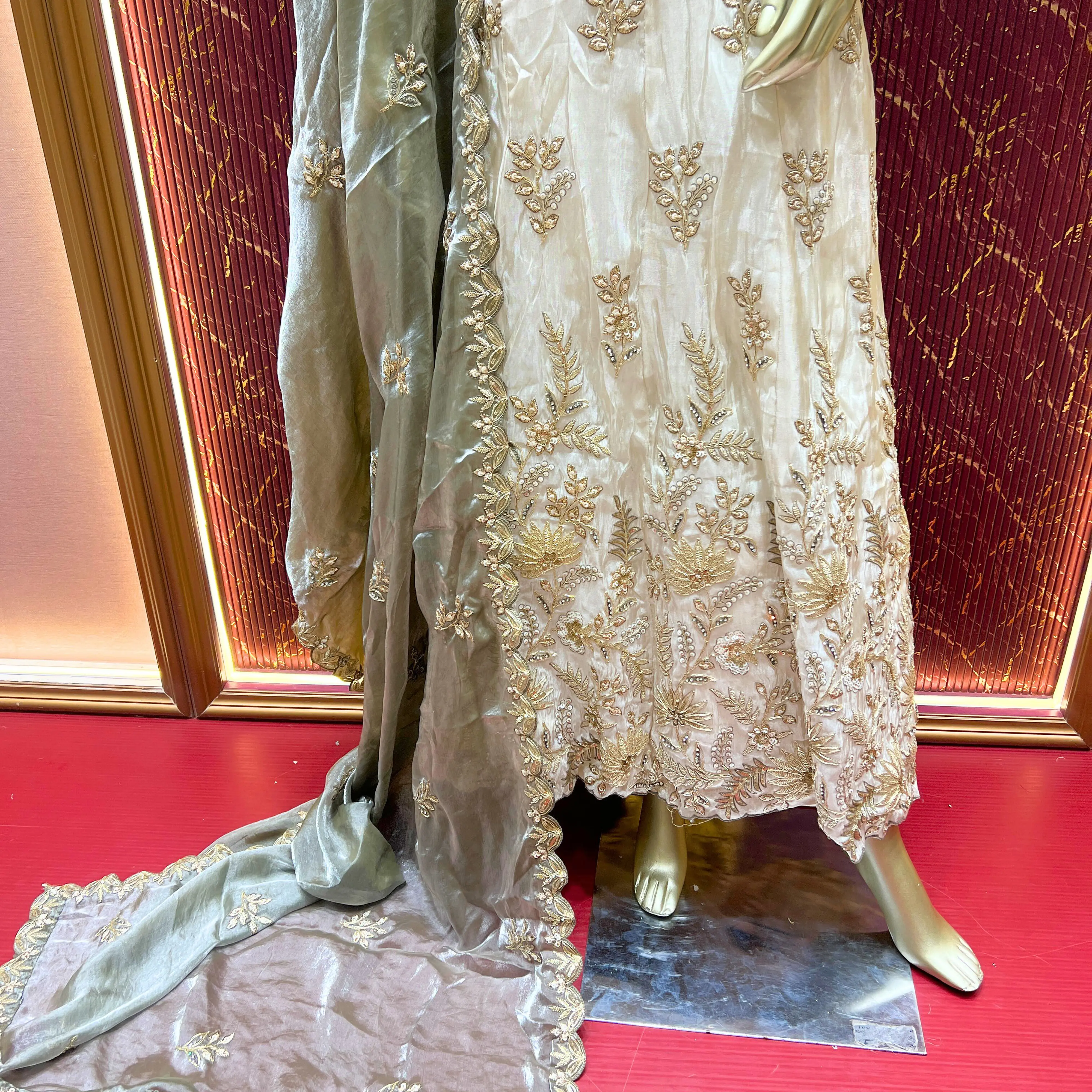 The Ivory Tissue Frock Set is an elegant and lightweight outfit, perfect for special occasions, casual events, and festive gatherings. Its ivory color gives a soft, sophisticated, and classy look.