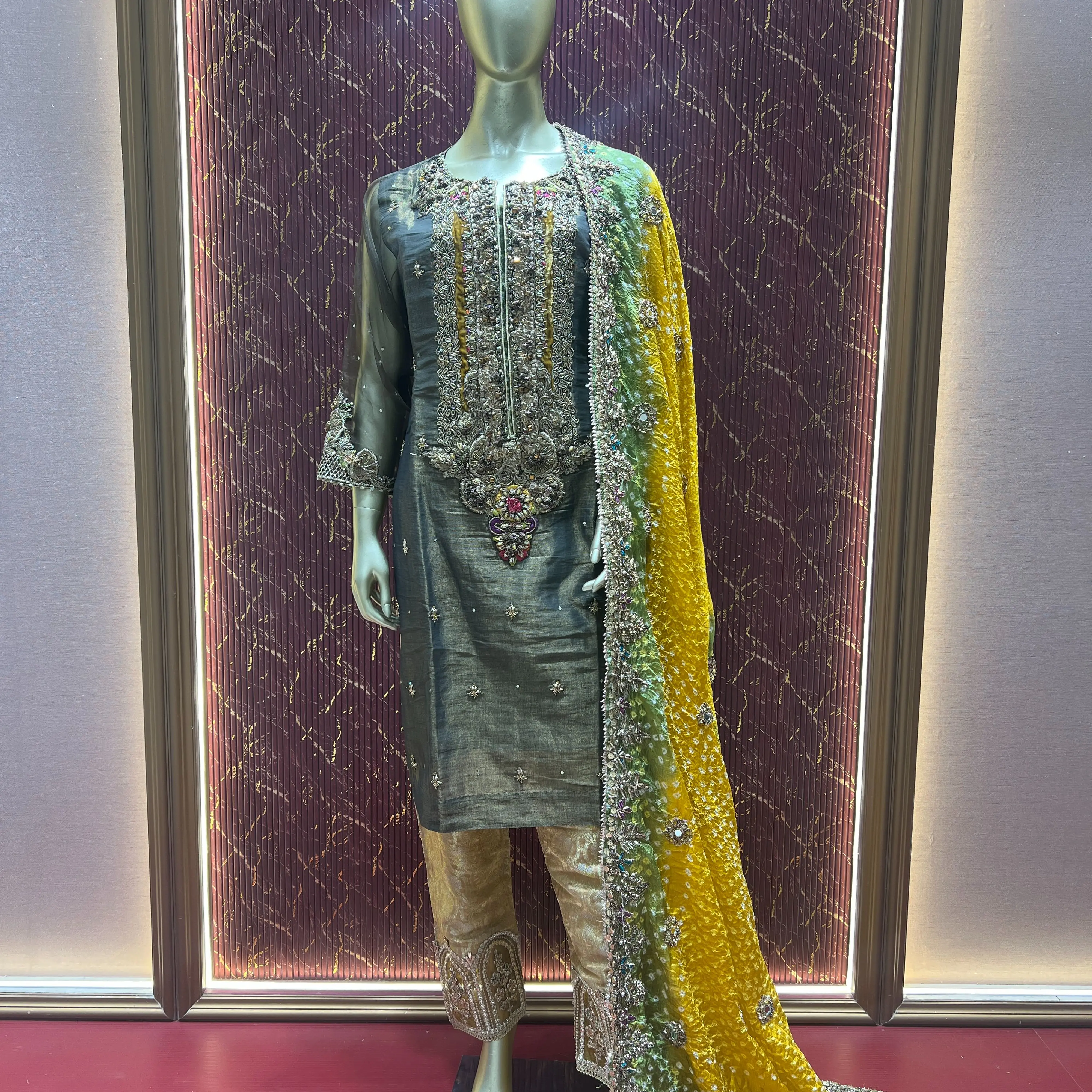 The highlight of the set is its Bandhani dupatta, which adds a unique ethnic charm and makes the outfit stand out beautifully.